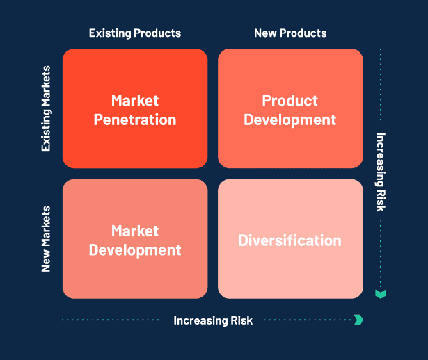 - 多样化(新产品/新市场)- 向新市场销售新产品和服务。
